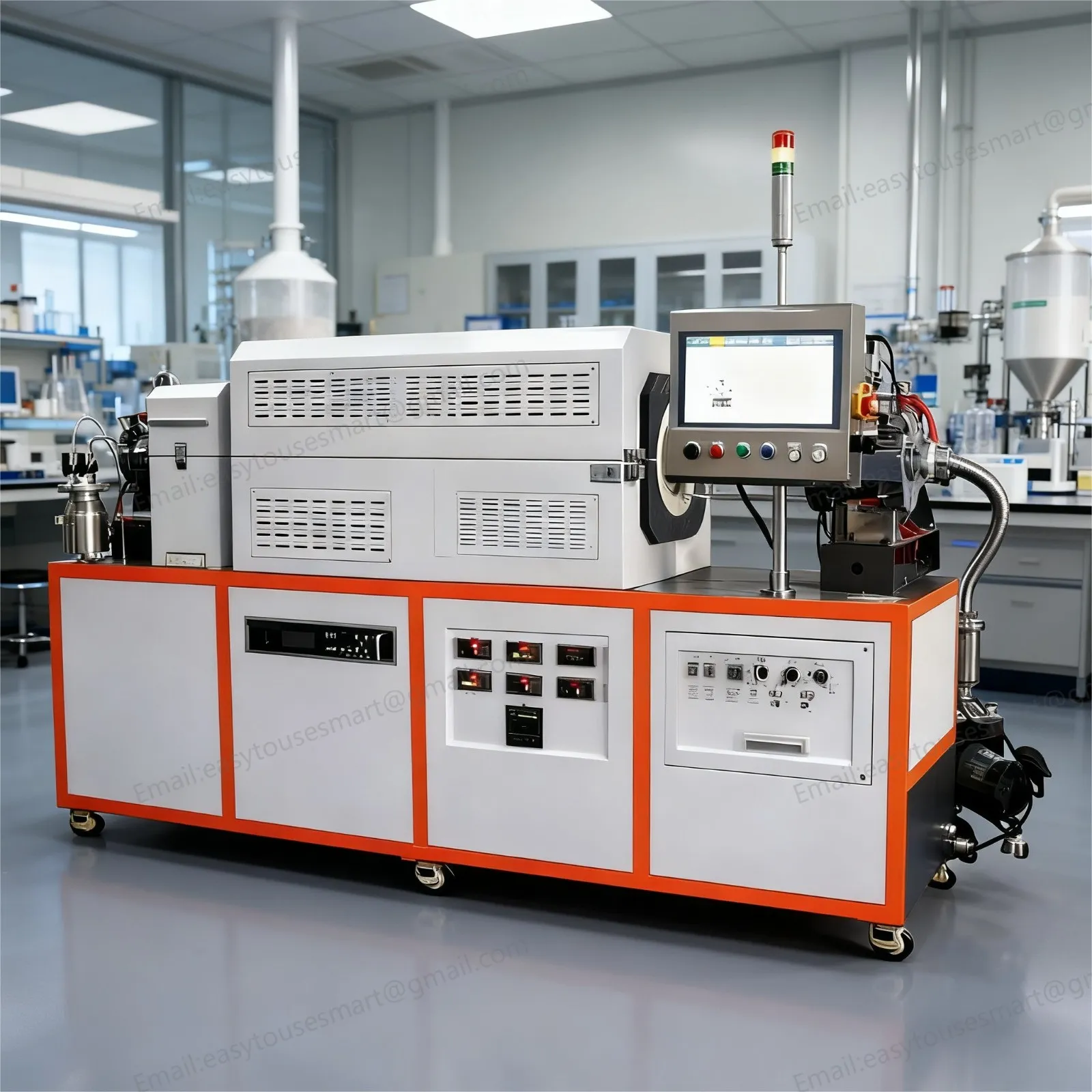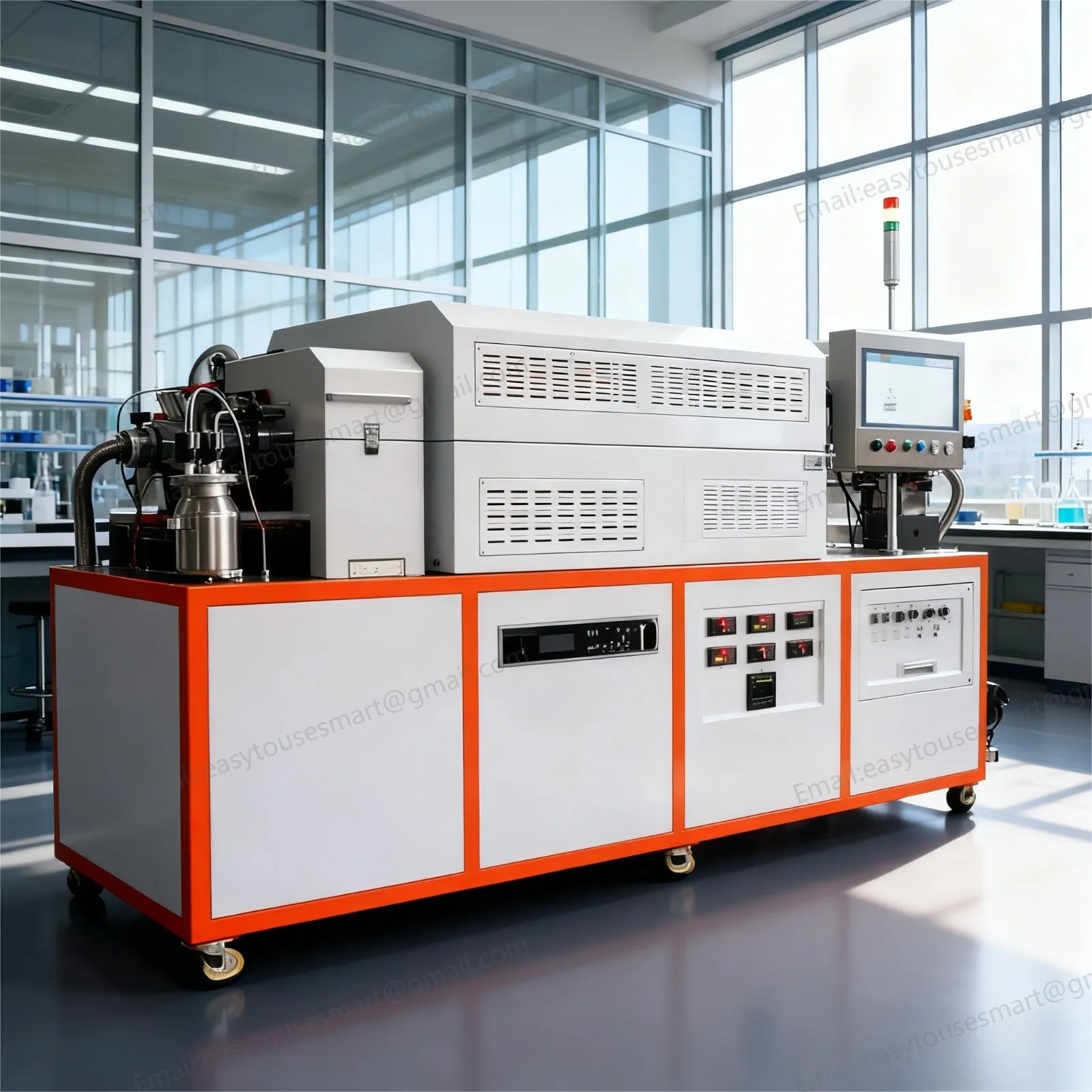Multiple safety interlock functions include over-temperature cutoff, water flow monitoring, overcurrent prevention and radio frequency protection. Reserved external gas processing interfaces meet laboratory safety operation norms.